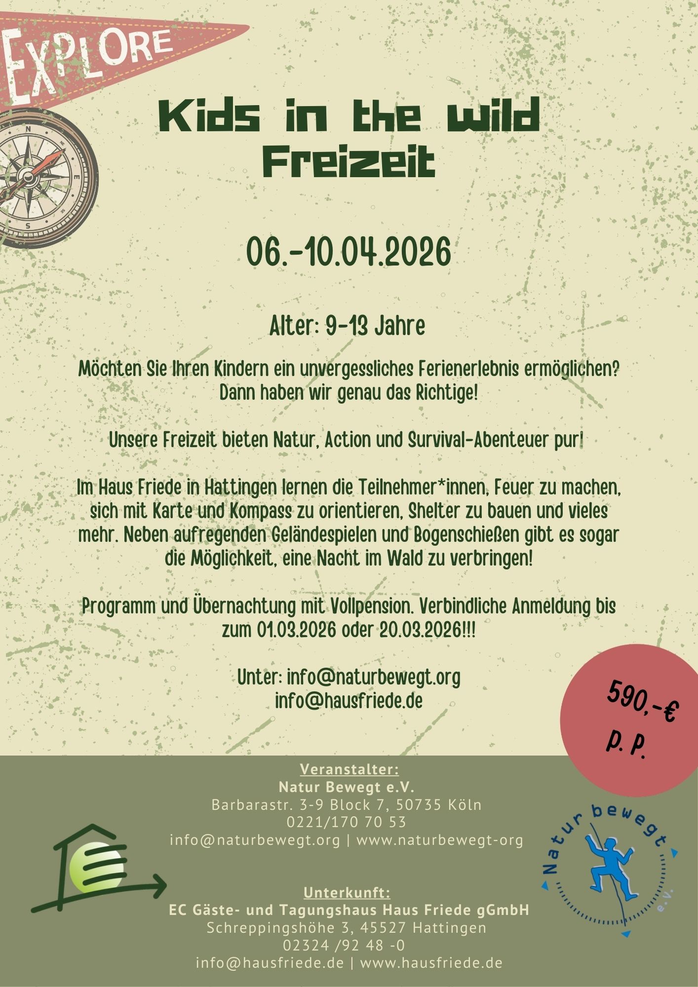 Unsere Outdoor-Ferienfreizeiten bieten Kindern während der Schulferien die Möglichkeit, die Natur hautnah zu erleben, neue Freundschaften zu schließen und ihre eigenen Grenzen spielerisch zu entdecken. Ob beim Klettern, Survivaltraining, Bogenschießen, Wandern, beim Spielen am Lagerfeuer oder beim Erkunden von Wäldern und Wiesen – jede Aktivität ist spannend, bewegungsreich und kindgerecht gestaltet.